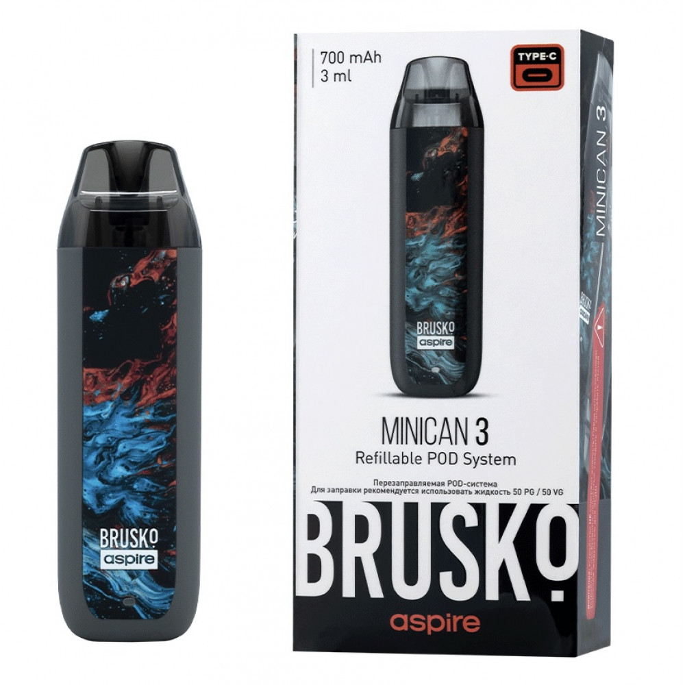 Перезаправляемая Под-Система Бруско Миникан 3 (Brusko Minican 3) 700 mah, Серый Флюид - купить в Таганроге